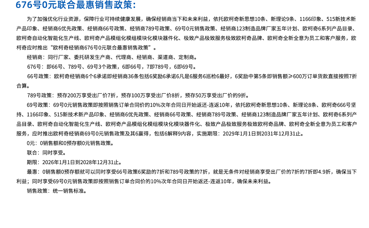欧柯奇经销商676政策