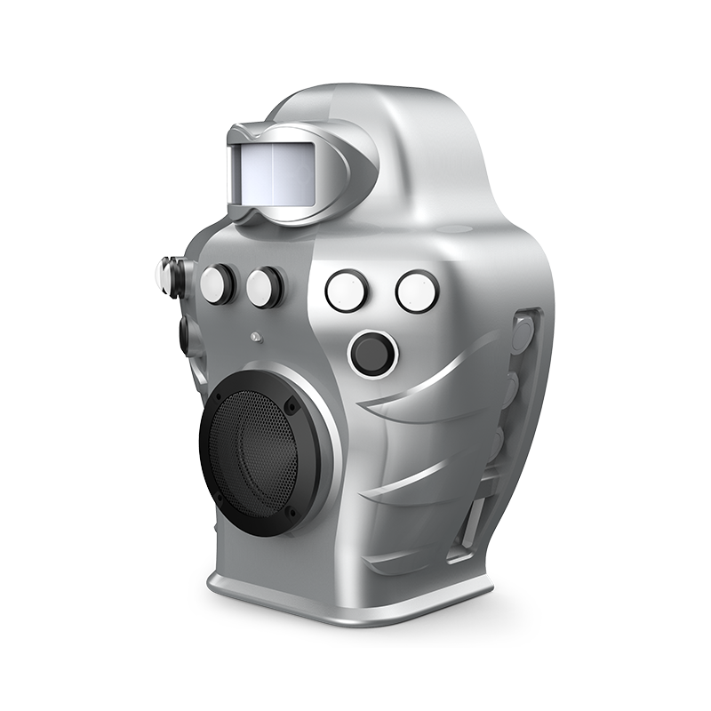 6、定制化解决方案:灵活配置:用户可自定义音频内容、播放模式或灯光闪烁模式(如爆闪灯序列)。支持选配组件,如火焰灯、电子围栏、脉冲电网或高清摄像头,适应不同威胁等级。
