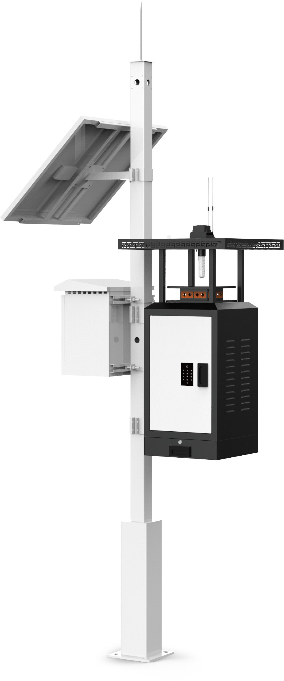 应用红外虫情性诱二合一测报仪专为农林虫情测报而研制,设备具有性诱和光诱二合一的综合功能,可根据现场使用需要选择不同的工作模式。 该灯利用现代光、电、数控技术,实现了虫体远红外自动处理、整灯自动运行等功能。在无人监管的情况下,能自动完成诱虫、杀虫、称重、拍照、扫虫等系统作业。满足虫情测报需要,及时掌握虫害发展趋势,为虫害防治提供科学的数据支撑,为现代农业提供服务。广泛应用于农业、林业、牧业、蔬菜、烟草、茶叶、药材、园林、果园、城镇绿化、检疫等领域。二、性能特点